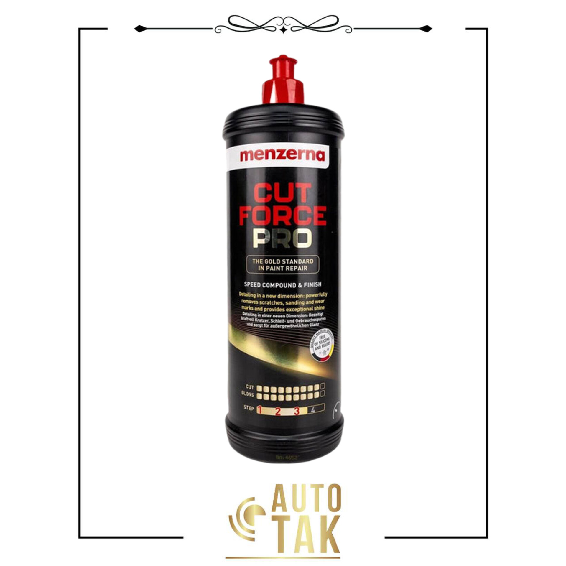 مدل Menzerna Cut Force Pro با کار آیی بالاو فناوری نوآورانه خود بعنوان جدید ترین محصول منزرنا نهایت لایهبرداری( کات 9 از 10 ) را با نهایت درخشندگی ( 9 از 10 ) ترکیب نموده و در یک محصول ارائه کرده است . این پولیش بر پایه آب ، علاوه بر این که فاقد گرده میباشد ، با کاهش زمان پولیشکاری ، ریکاوری رنگ را برای شما بسیار آسان میسازد. این محصول فاقد هر گونه سیلیکون وفیلر بوده و قابل استفاده با دستگاه پولیش روتاری و اوربیتال میباشد.